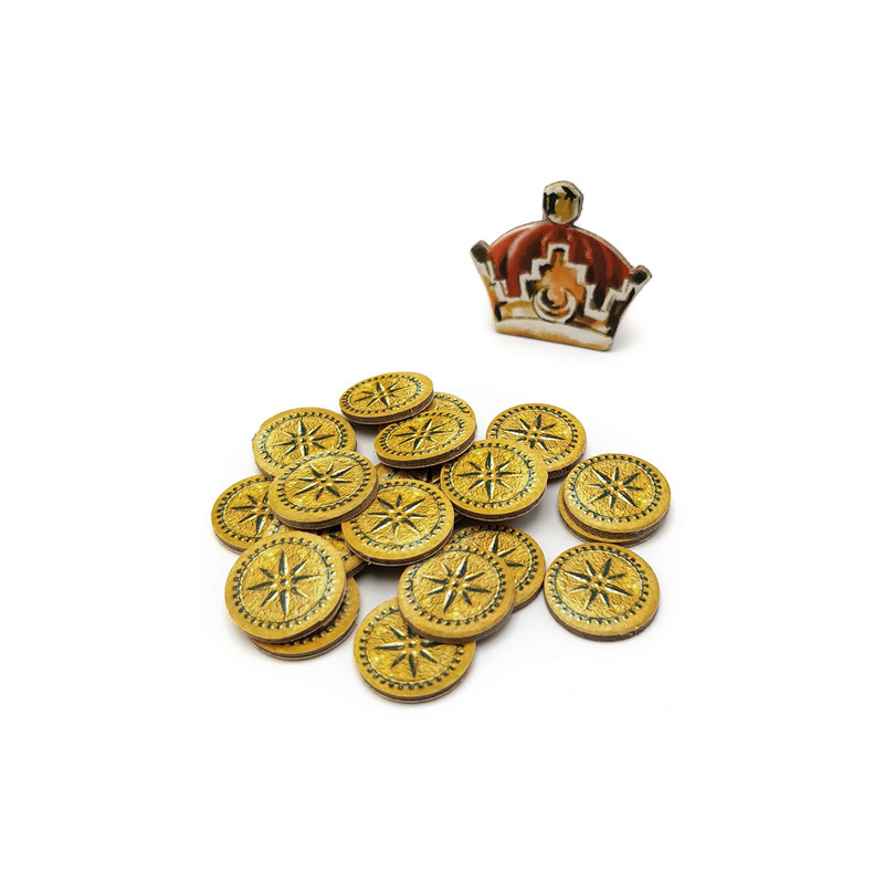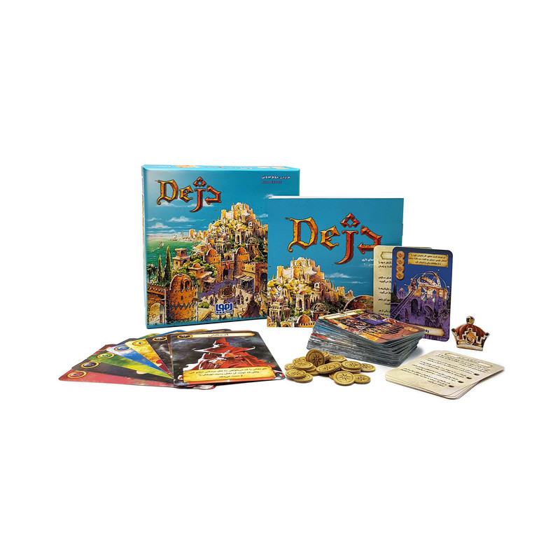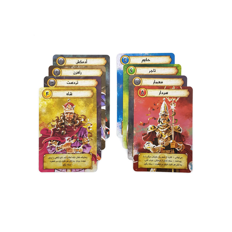 | اقلام همراه | 8 کارت نقش61 کارت سازه25 سکه1 تاج1 کیسه پارچهایدفترچه قوانین بازی |