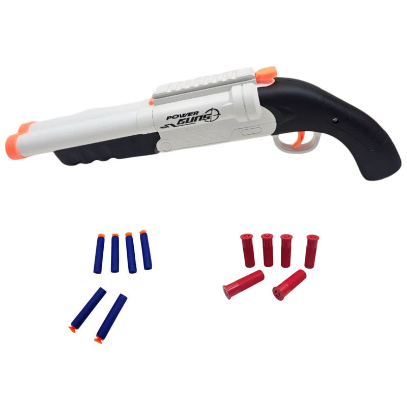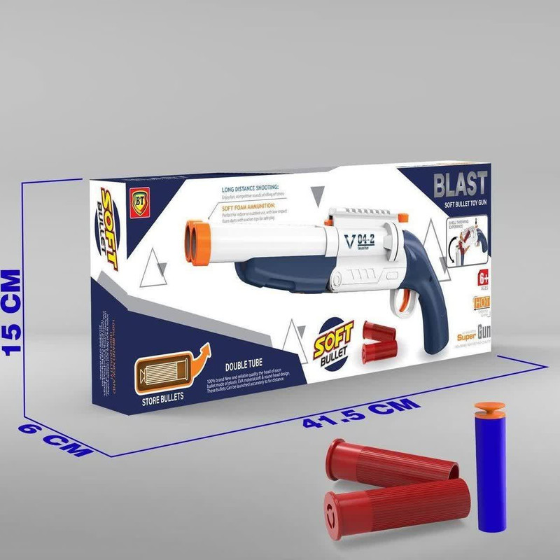 فنگ شاتگان پوکه پران SUPER GUN قابلیت پرتا تیر در برد 8 متر را دارد. ابتدا تفنگ را با کمک اهرم بالایی که دارد باز کنید تیر ها را درون پوکه قرار دهید و با قرار دادن پوکه ها در جای مخصوص و بستن تفنگ آن را در حالت آماده به شلیک قرار میگیرد. تفنگ شاتگان پوکه پران SUPER GUN قابلیت شلیک هم به صورت تک تیر و دو تایی دارد با باز کردن تفنگ پوکه ها به بیرون پرتاب میشوند. این تفنگ اسباب بازی شامل 10 عدد تیر فومی نرم EVA با سر چسبونکی و 6 عدد پوکه است. تیرها برای کودکان ساخته شده اند که سبک وزن هستند و به کسی آسیب نمی رسانند و یک انتخاب ایده آل برای کودکانی است که عاشق بازی های جنگی با اسلحه در داخل خانه، حیاط و طبیعت هستند. توجه کنید که به سمت صورت شلیک نکنید و برای کودکان زیر 8 سال باید زیر نظر بزرگسالان اسلحه بازی کنند. این بلستر به شما این امکان را می دهد که از فاصله دور یا در فاصله نزدیک به حریفان شلیک کنید. تفنگ اسباب بازی کودک ساخته شده از پلاستیک با درجه کیفی بالا و فاقد مواد سمی است و برای نقش بازی کودکان و بازیهای بیرون از خانه، بازی وانمودی بسیار ایده ال است که مهارتهای حرکتی، تخیل و خلاقیت کودکان را توسعه میدهد.