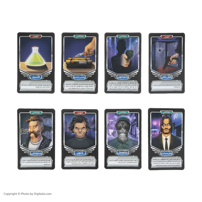 | اقلام همراه | 8 زمینه بازی8 گیره16کارت ویژهنشان صدا خفه کنبروشور بازی |