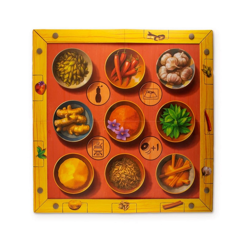 | سایر توضیحات | بعد از اتمام خرید و فروش ادویه، بازیکنان ادویههایی که خریدهاند را با کارتهای ادویهی ترکیبی رو شده کنار زمینه، مقایسه میکنند. به ترتیب و با شروع از سرآشپز، هر بازیکنی که ادویههای موجود در یکی از کارتهای ادویهی ترکیبی را دارد، آنها را به «رو» در جایگاه کارتهای باطل شده کنار زمینه میگذارد و کارت ادویهی ترکیبی مورد نظر را برمیدارد. در این مرحله هر بازیکن فقط یک کارت ادویهی ترکیبی را میتواند به دست آورد، و نه بیشتر. |