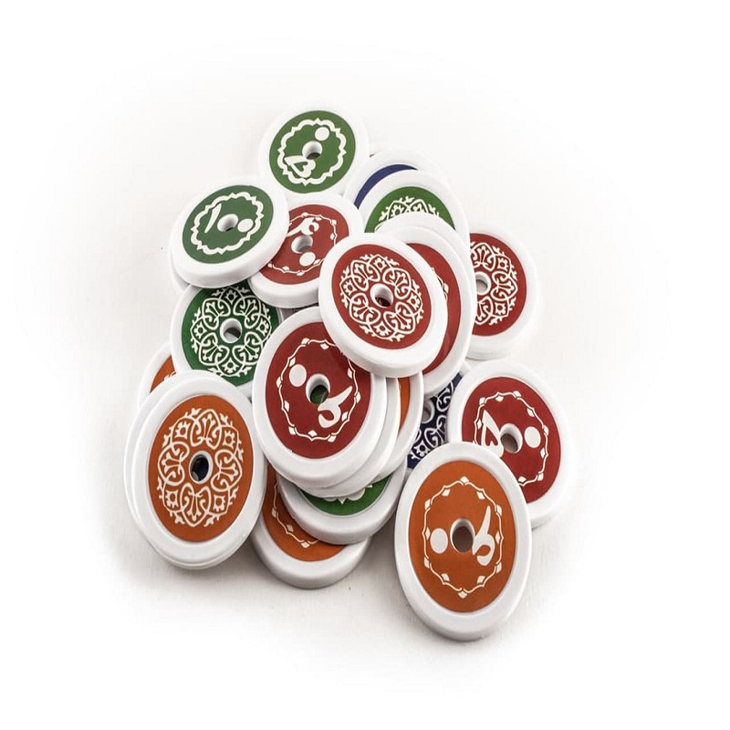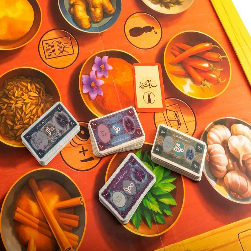 | اقلام همراه | 1- زمینهی بازی، 2- 54 کارت ادویه، 3- 18 کارت ادویهی ترکیبی، 4- 24 سکه، کارت سرآشپز، 5- 43 کارت پول، 6- بروشور بازی |