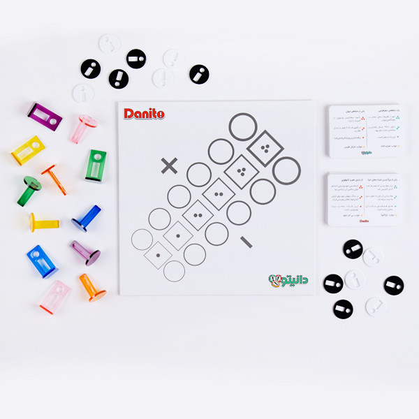 | اقلام همراه | صفحه ی بازی100 عدد کارت6جفت مهره50 توکن امتیازبروشور بازی |
