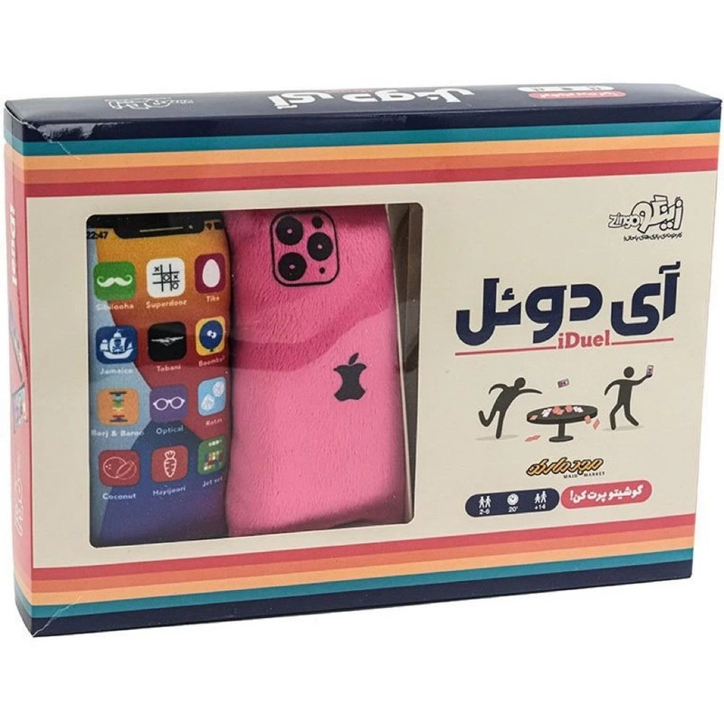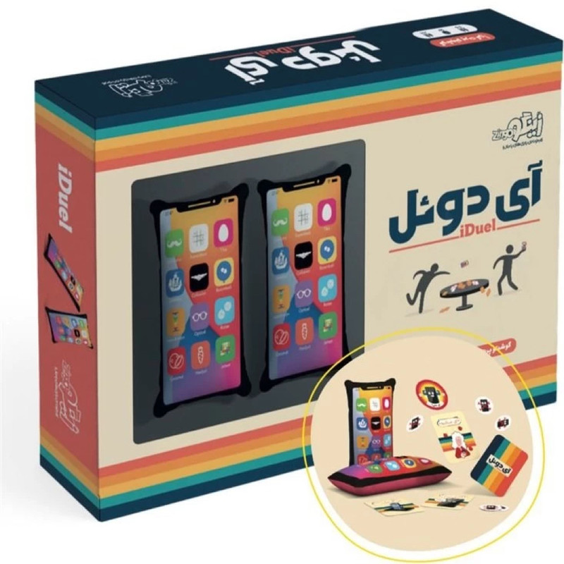 | خلاصه روش بازی | توضیح مختصر و مفید!محتویات بازی شامل ۱۲۰ تا کارت، دو عدد گوشی موبایل بالشتی (باور کنین سعی کردیم واقعیش رو براتون تهیه کنیم ولی خطرناک بود!)، ۶ توکن ویروسی و ۱ عدد نشان آیخفن کنار راهنمای بازی هست. تو این بازی همهی بازیکنها ۱۵ کارت دریافت میکنن و از بین اونها ۵ کارت برمیدارن و میگیرن دستشون. برای امتیاز گرفتن باید تند و سریع کارتها رو پاسکاری کنن تا مجموعههای ۳ تایی از کارتهای یکسان بسازن. با شروع بازی هر بازیکن یه کارت از دستش خارج میکنه و میذاره سمت چپش و از دستهی کارتهای بازیکن بغلی یه کارت جدید برمیداره. هر بازیکنی که بتونه یه مجموعهی ۳ تایی درست کنه اون ۳ کارت رو برای امتیاز میذاره کنار. در طول بازی، بعضی کارتها یه نبرد گوشیای شروع میکنن و اگه توی این نبرد ویروسی بشین (یعنی یه توکن ویروس به پستتون بخوره) ازتون امتیاز کم میشه. اگه یه بازیکن بتونه مجموعهای از کارتهای نبرد جمع کنه میتونه هم امتیازش رو بگیره و هم با اعلام نبرد، همه رو وارد جنگ کنه. توی مرحلهی نبرد (اوج عشق و حال!) بازیکنها گوشیهای موبایل رو برمیدارن و میزنن تو سر و کلهی هم. هرکس گوشی بهش بخوره یه توکن ویروسی میگیره. آمادهی نبرد! آماده کردن بازی آیدوئلبرای شروع، اول کارتها رو بُر بزنین و به هر بازیکن ۱۵ تا کارت (به پشت و نامشخص) بدین. هر بازیکن کارتها رو میذاره سمت راست خودش. بقیهی کارتها رو دو دسته کنین و وسط میز بذارین. گوشیها و توکنهای ویروسی رو هم جوری بذارین وسط که دست همه بهشون برسه. هر بازیکن از بین دستهی کارتهاش ۵ تا رو انتخاب میکنه، این کارتها رو رو میکنه تا بقیهی بازیکنها هم اونها رو ببینن. حالا آمادهی شروع شدین. مرحلهی اول! کارتبازیتو این مرحله اتفاق پیچیدهای نمیافته، از کارتهای دستتون یکی رو میذارین بیرون و یه کارت جدید برمیدارین. این بازی نوبت نداره و وقتی شروع شد همه با هم شروع میکنن. هر لحظه از بازی که تونستین ۳ تا کارت یکسان پیدا کنین، اگه کارتها عادی بودن از دستتون خارجشون کنین و به عنوان امتیاز بذارین جلوتون. بعد سه تا کارت از دستهی کارت مخصوصتون بردارین و ادامه بدین. اگه ۳ تا کارت نبرد جمع کردین با صدای بلند باید بگین "نبرد!"، اینجا بازی عادی متوقف میشه تا وارد مرحلهی نبرد بشین. مرحلهی نبرد: گوشی رو پرت کن! توی این بازی سه جور کارت نبرد داریم که میتونین با جمع کردن سهتا از هرکدوم بازی عادی رو متوقف کنین و وارد یه نبرد جانانه بشین! هر توکن ویروس توی این مرحله یک امتیاز منفی داره!آیکلکل"آیکلکل" یه نبرد دو نفرهاست! وقتی یه بازیکن اعلام "آیکلکل" کنه، نفر سمت راست و چپش وارد کلکل میشن و هرکدومشون باید یکی از گوشیها رو بردارن و فرار کنن و سعی کنن حین جاخالی دادن حریف رو هم با گوشی بزنن. به محض اینکه گوشی به یکی از بازیکنها اصابت کنه کلکل تموم شده و شخص گوشیخورده یک توکن ویروسی برمیداره. نکته: از کارت "آیکلکل" دو رنگ مختلف هست، برای ساخت مجموعه باید رنگ کارتها یکی باشه!آیجنگبا اعلام "آیجنگگ همهی بازیکنها به جز کسی که "آیجنگ" رو شروع کرده وارد مبارزه میشن. هرکدوم از بازیکنها باید سعی کنه زودتر از بقیه گوشی رو بقاپه و به سمت بقیه پرتاب کنه. توی این مرحله شاهد پرواز گوشیها در هوا و اصابتشون به هدف و فرار آدمها و کلی هیجان خواهید بود! وقتی گوشی به یکی از بازیکنها بخوره جنگ تموم میشه و بازیکن باید یه توکن ویروسی بگیره.آیدوئلهمونجوری که از اسمش پیداست، با اعلام "آیدوئل" میتونین دوتا بازیکن (از جمله خودتون!) رو انتخاب کنین تا دوئل کنین. بازیکنها هرکدوم یکی از گوشیها رو برمیدارن و با شمارش یک، دو، سه، سه قدم از هم فاصله میگیرن و بعد با اعلام آتش میچرخن و گوشیها رو به سمت هم پرت میکنن. هر بازیکنی مورد اصابت گوشی قرار بگیره یه توکن ویروسی میگیره. پایان بازی"آیدوئل" وقتی تموم میشه که همهی توکنهای ویروسی استفاده شده باشن. تو این مرحله دور اول بازی تموم شده و بازیکنها باید امتیازهاشون (مجموعه کارتهای ۳ تایی که جمع کردن) رو 