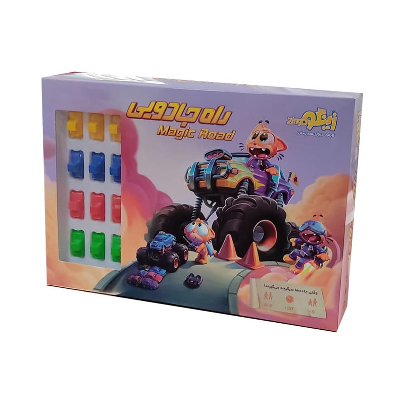 | اقلام همراه | 1- زمینهی بازی، 2- 3 تاس، 3- 3 پل رنگی جادویی و متحرک، 4- 12 ماشین در 4 رنگ، 5- 12 توکن تعمیر، 6- بروشور بازی |