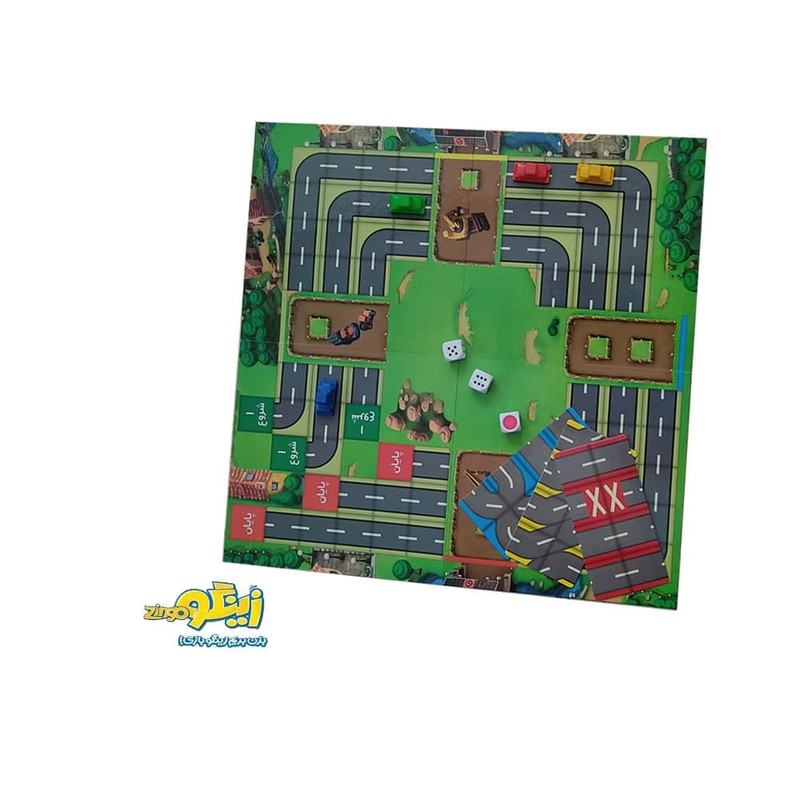 | سایر توضیحات | هر بار که یکی از ماشینهایتان را بدون تصادف به خانهی پایان رساندید، آن را در همان سمت، کنار زمینه بگذارید.توجه! اگر ماشینی در نزدیکی خط پایان باشد و یک ماشین دیگر با آن تصادف کند و آن را هل بدهد و اینطوری برساند به خط پایان، آن ماشین برنده نشده و باز هم از زمینه بیرون میرود! چه ماشین خودتان باشد، چه ماشین دیگران! برای همین گفتیم بدون تصادف!پایان بازی::وقتی بازیکنی هر سه ماشین خودش را به خانهی پایان برساند، بازی تمام میشود و این بازیکن، هم برندهی بازی است و هم یک رانندهی درجه یک!روش پیشرفته::اگر میخواهید به روش پیشرفته بازی کنید، در ابتدای بازی 12 توکن تعمیر را هم کنار زمینه بگذارید. در طول بازی، هر بار که یکی از ماشینهایتان از زمینه بیرون برود و از اول شروع کند، یک توکن تعمیر برمیدارید.هر وقت که نوبتتان شد، اگر خواستید میتوانید یکی از توکنهای تعمیر خود را استفاده کنید. اول آن توکن را به کنار زمینه پیش بقیهی توکنها برگردانید. حالا به جای اینکه تاس رنگ را بریزید، خودتان یک رنگ را انتخاب کنید و پل آن رنگ را جابهجا کنید. سپس دو تاس عدد را بریزید و ماشینهایتان را مثل روش عادی حرکت بدهید. |